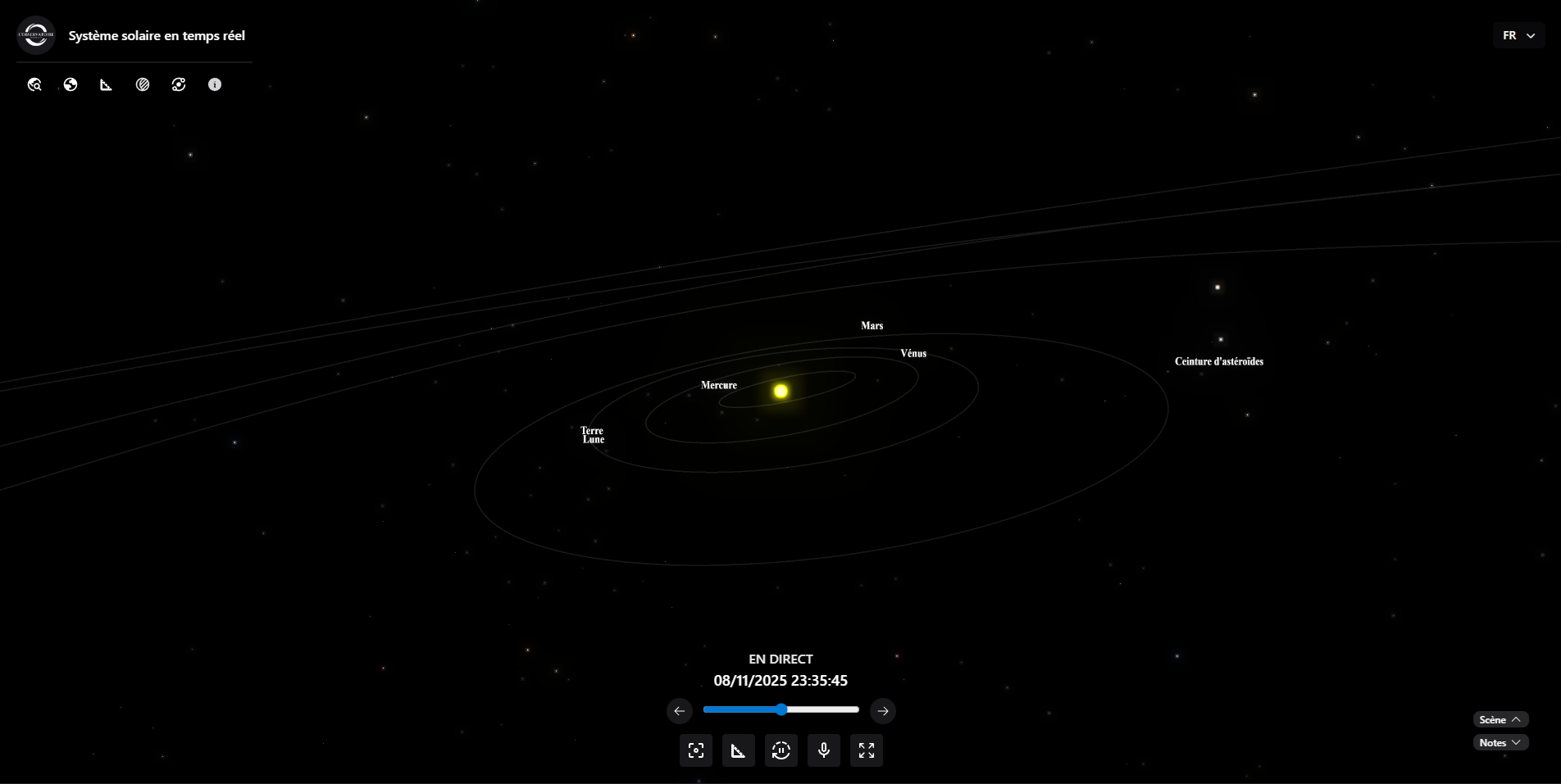Une application web d'observation du sytème solaire et des constellations en 3d temps réel. Développé avec Nuxt.js, Three.js, TailwindCSS.